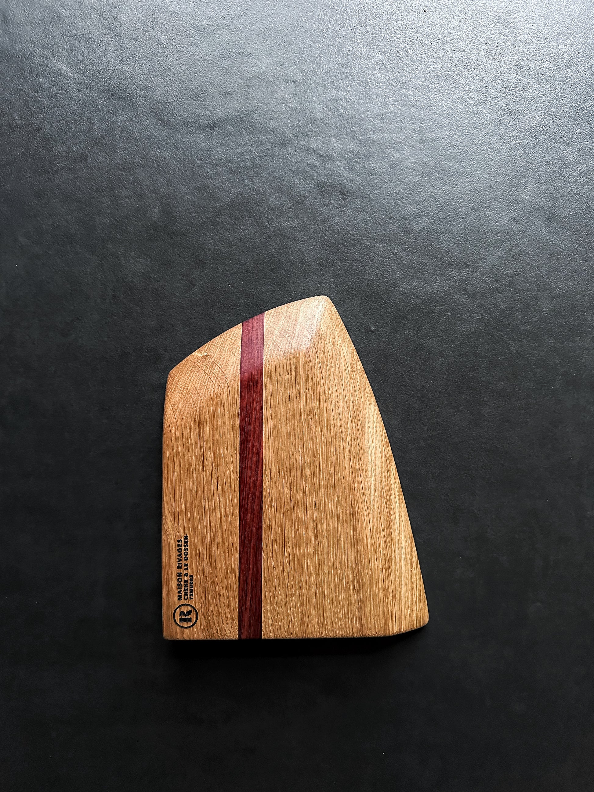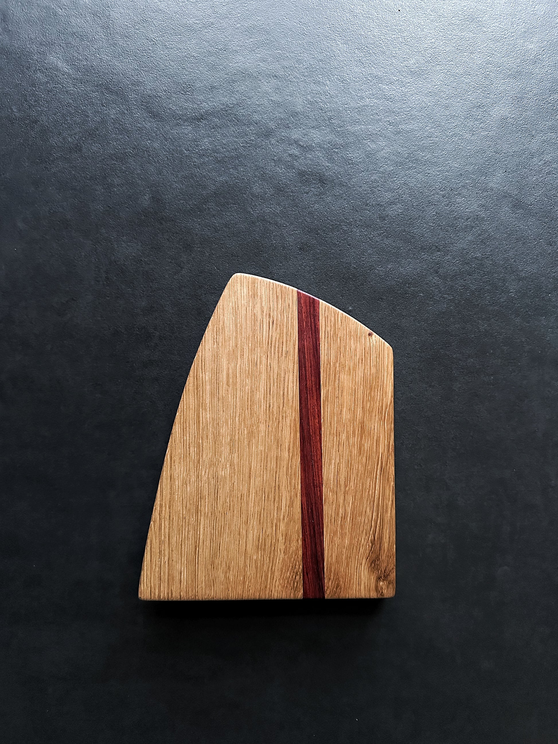 La Planche à Découper RIVAGES, un outil du quotidien qui devient un plateau selon votre usage. Façonnée à la main en bois par Maison RIVAGES dans son atelier à Cléder, Finistère Nord. Sa forme s'inspire des arrières de surf, des voiles et des safrans de bateaux