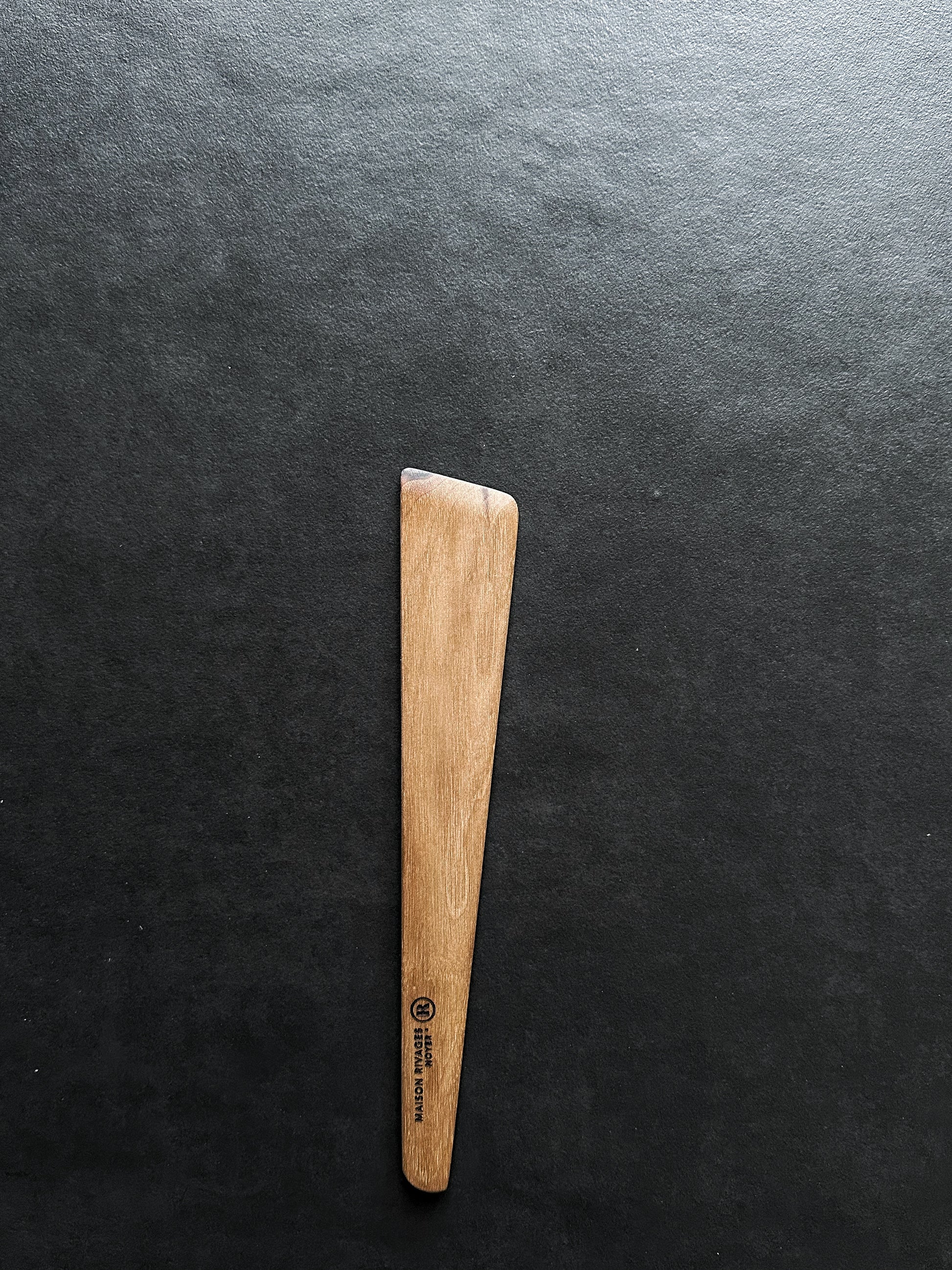 La Plume RIVAGES complète la collection des Spatules de Cuisine, pensée pour une prise en main plus fine. Elle propose un geste plus précis et méticuleux, ce qui peut devenir important pour la préparation de certains de vos plats. Façonnée à la main en bois par Maison RIVAGES dans son atelier à Cléder, Finistère Nord. Cirée avec soin pour protection alimentaire et durable.