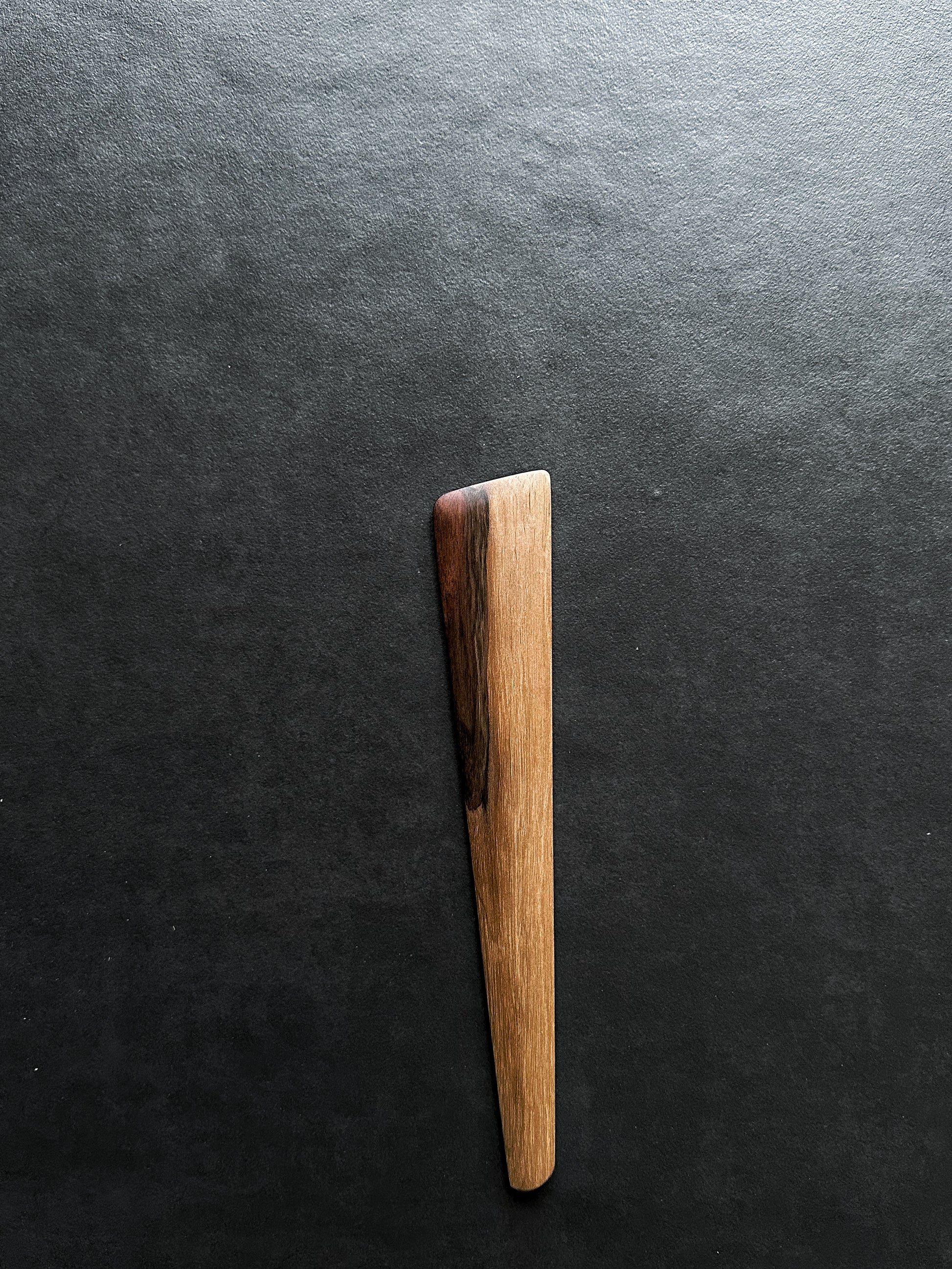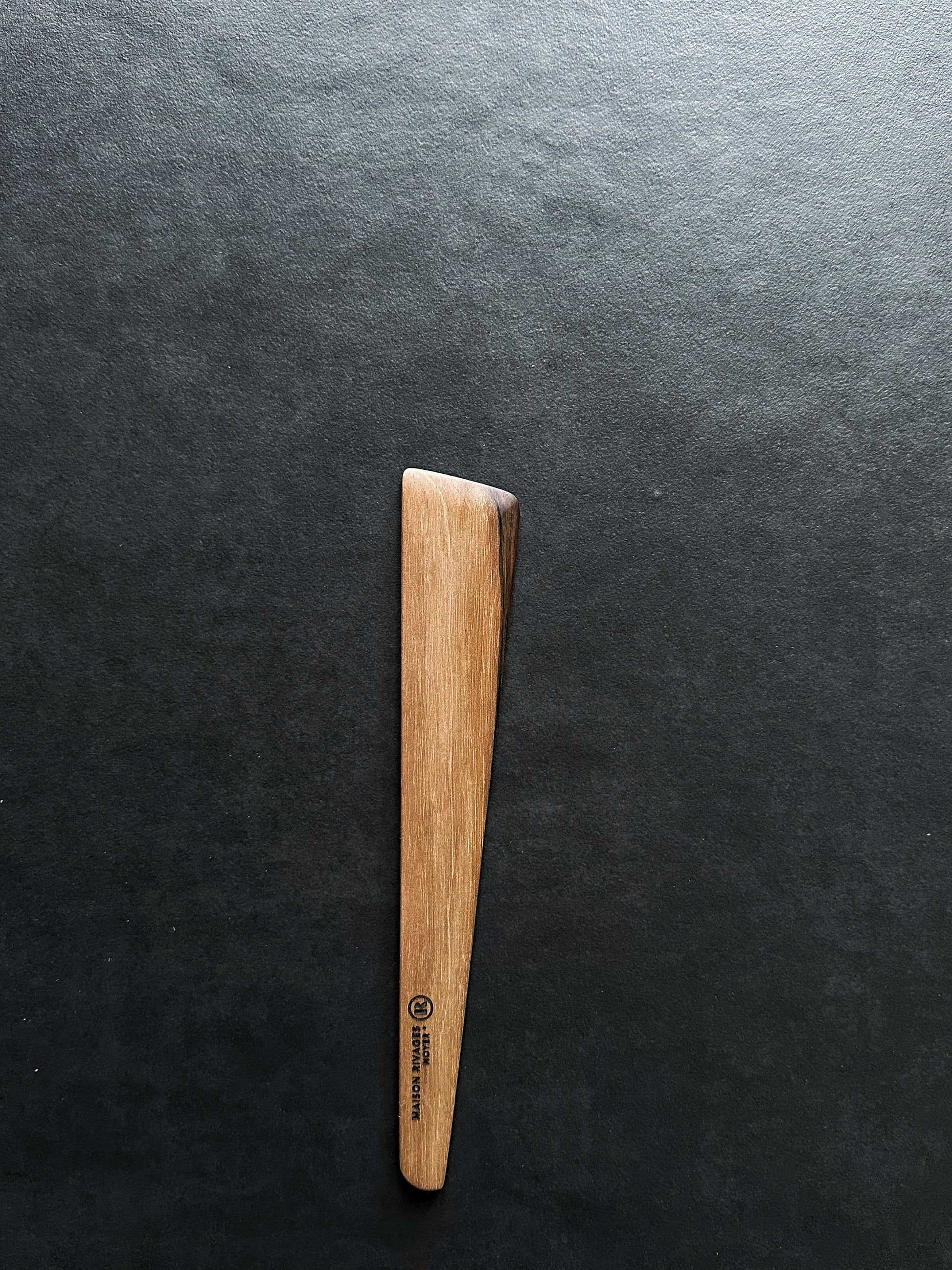 La Plume RIVAGES complète la collection des Spatules de Cuisine, pensée pour une prise en main plus fine. Elle propose un geste plus précis et méticuleux, ce qui peut devenir important pour la préparation de certains de vos plats. Façonnée à la main en bois par Maison RIVAGES dans son atelier à Cléder, Finistère Nord. Cirée avec soin pour protection alimentaire et durable.