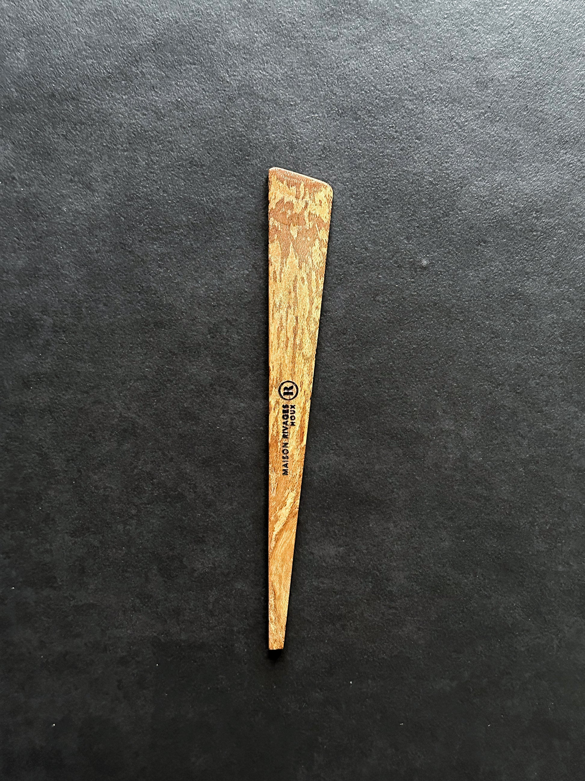Le Couteau à Beurre, un outil essentiel pour vos gestes gourmands du quotidien. "La forme s'inspire des ailerons de surf présents sur les Bonzer Classic et des Poissons Pilotes qui sont pour moi l'image de la gourmandise chez les gens". Façonné à la main en bois par Maison RIVAGES dans son atelier à Cléder, Finistère Nord. Ciré avec soin pour protection alimentaire et durable.