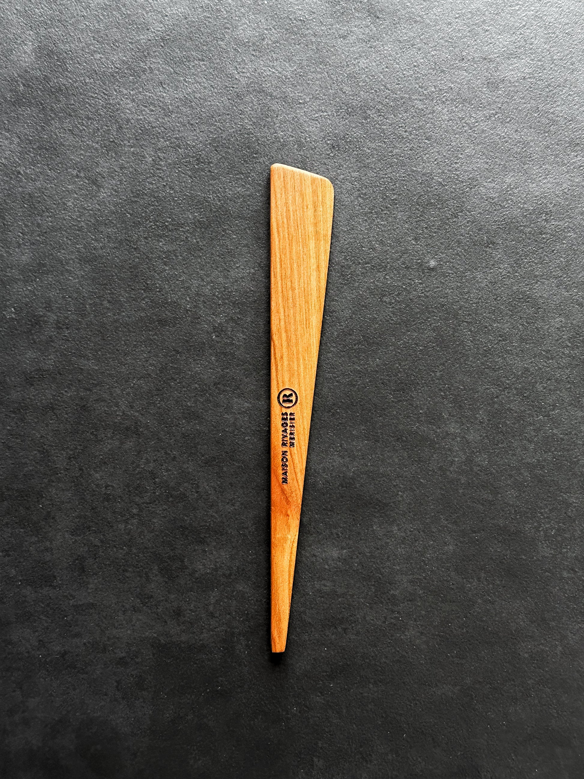 Le Couteau à Beurre, un outil essentiel pour vos gestes gourmands du quotidien. "La forme s'inspire des ailerons de surf présents sur les Bonzer Classic et des Poissons Pilotes qui sont pour moi l'image de la gourmandise chez les gens". Façonné à la main en bois par Maison RIVAGES dans son atelier à Cléder, Finistère Nord. Ciré avec soin pour protection alimentaire et durable.