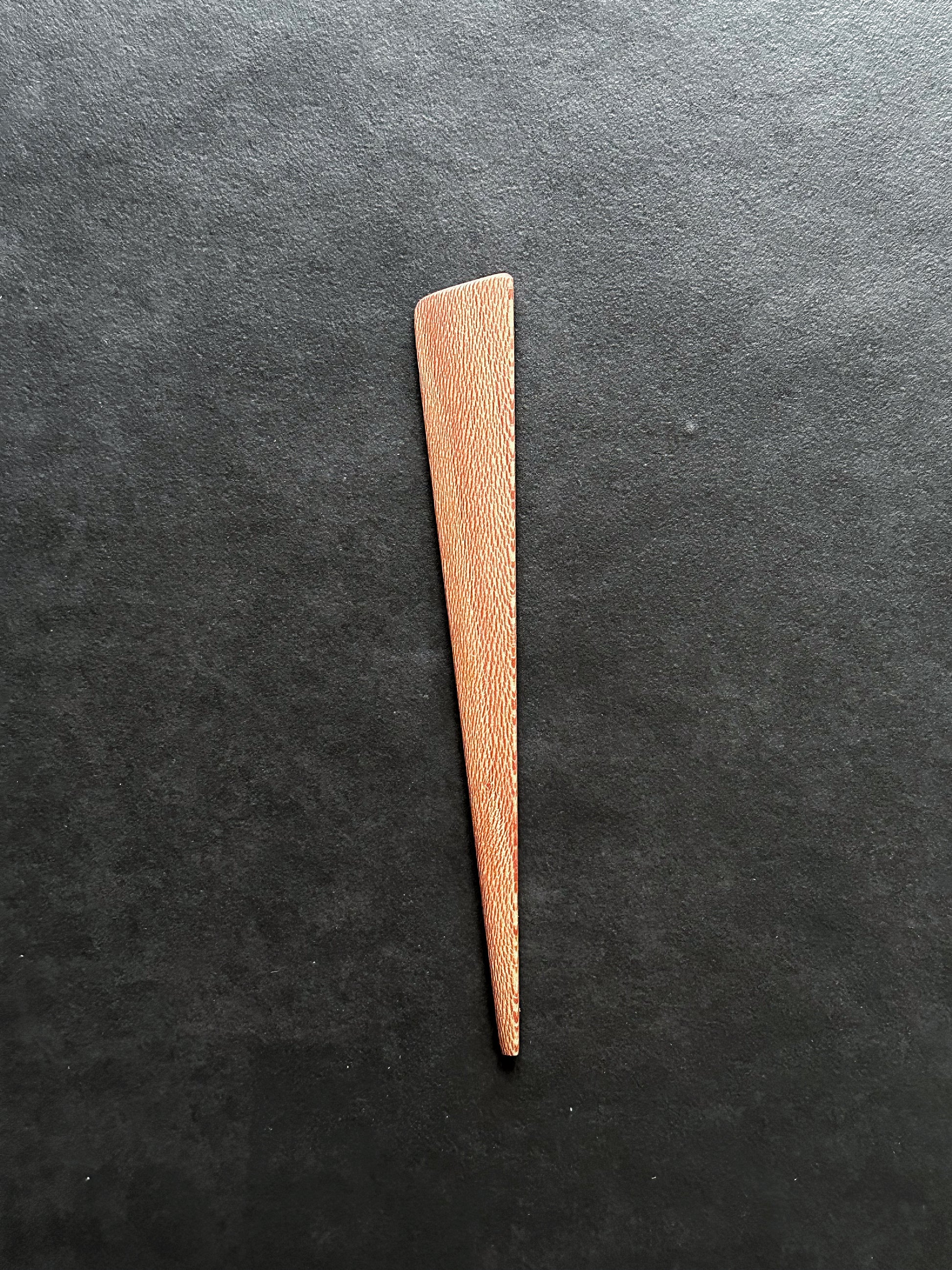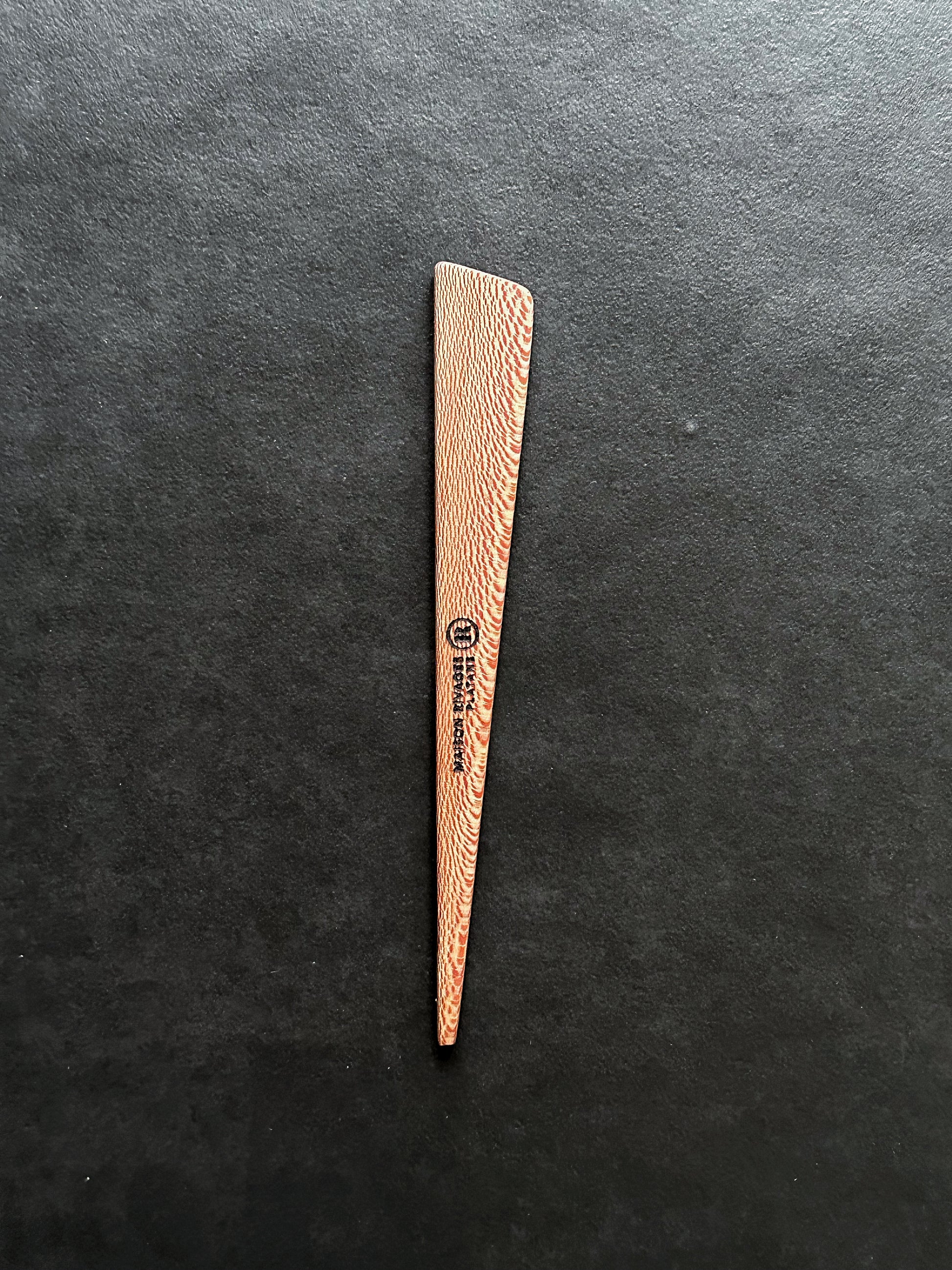 Le Couteau à Beurre, un outil essentiel pour vos gestes gourmands du quotidien. "La forme s'inspire des ailerons de surf présents sur les Bonzer Classic et des Poissons Pilotes qui sont pour moi l'image de la gourmandise chez les gens". Façonné à la main en bois par Maison RIVAGES dans son atelier à Cléder, Finistère Nord. Ciré avec soin pour protection alimentaire et durable.